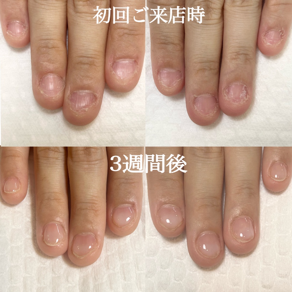 こんにちは!!滋賀県南草津の自爪育成サロンラブーケのサヤカです^^たったの3週間足らずで驚くほど成長されたお客さま☆☆