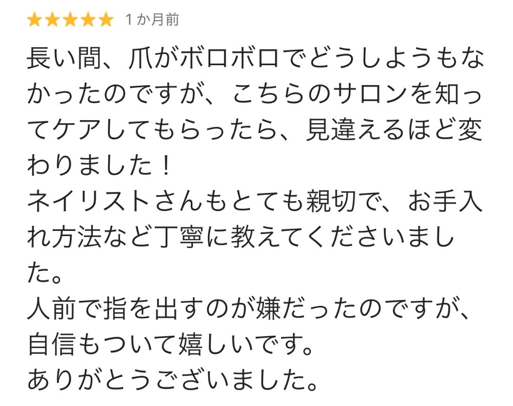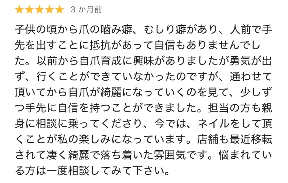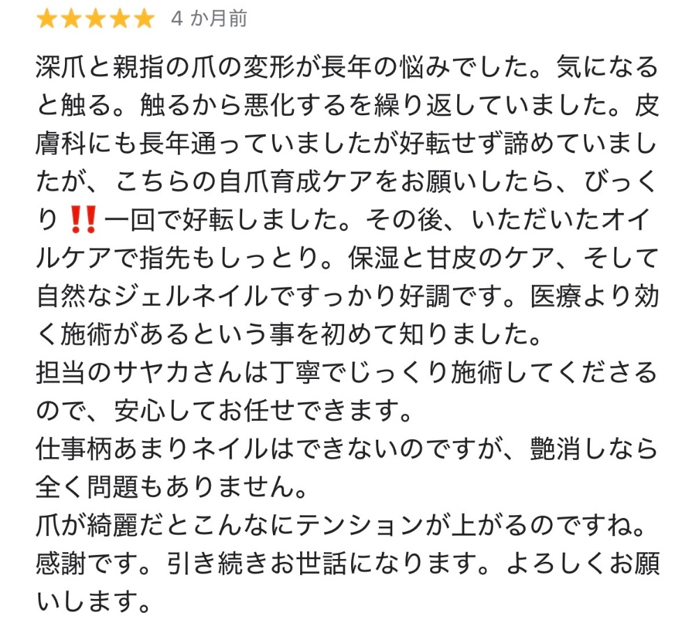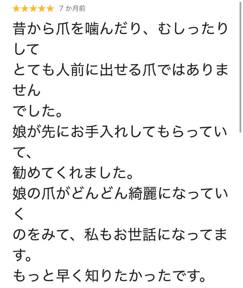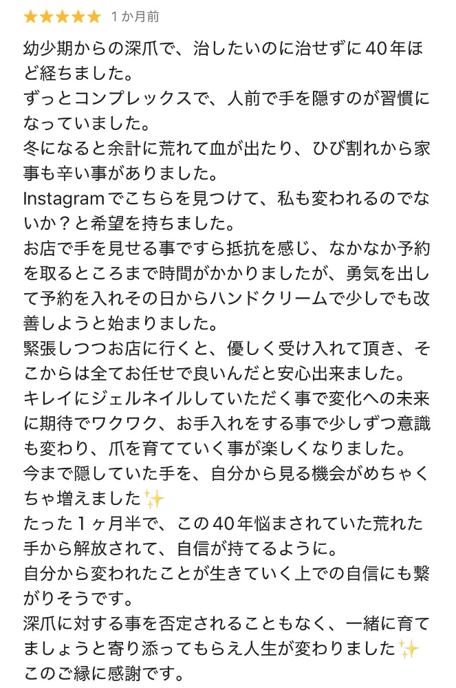 長い間、深爪に悩んでいたお客様