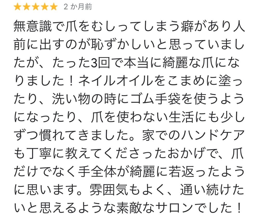 無意識に爪をむしる癖から爪が伸ばせなかったお客様