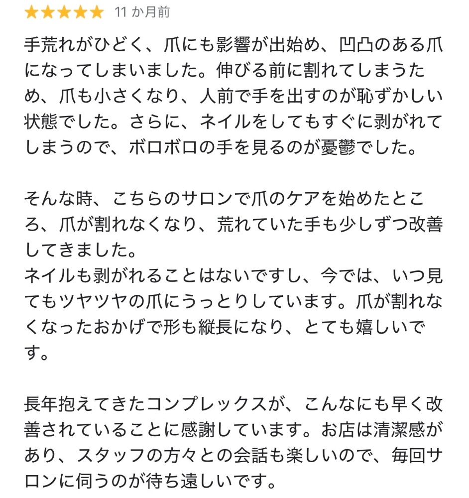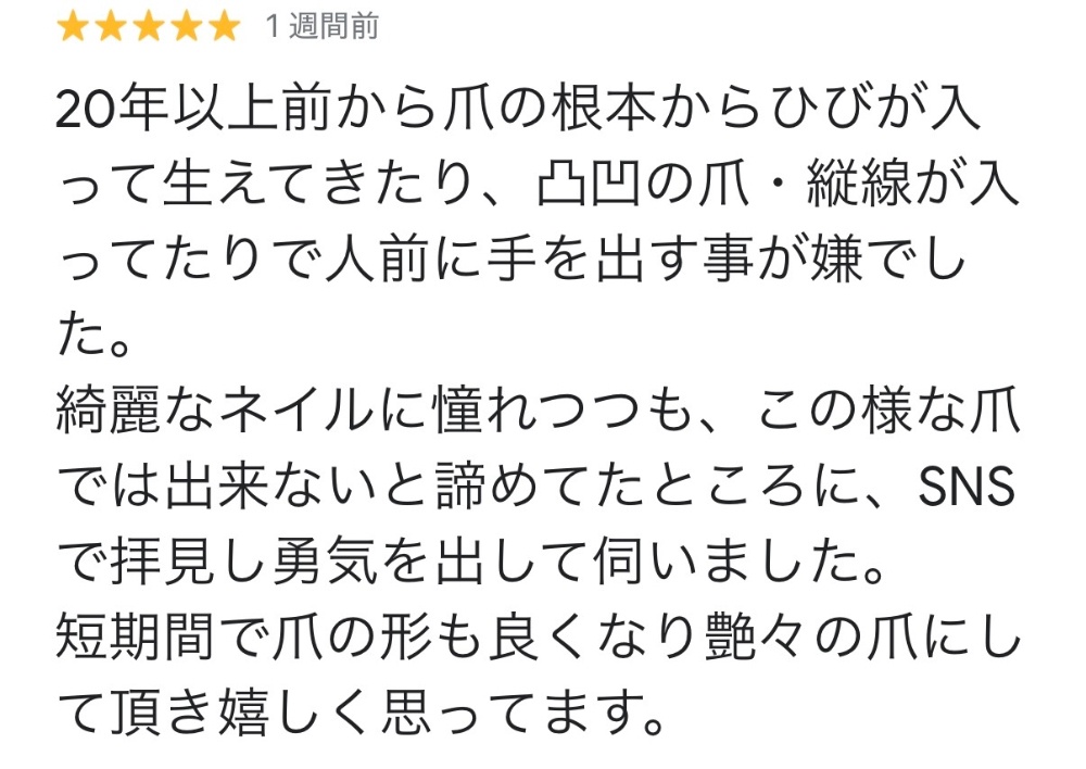 20年以上、デコボコ爪や割れる爪にお悩みだったお客様