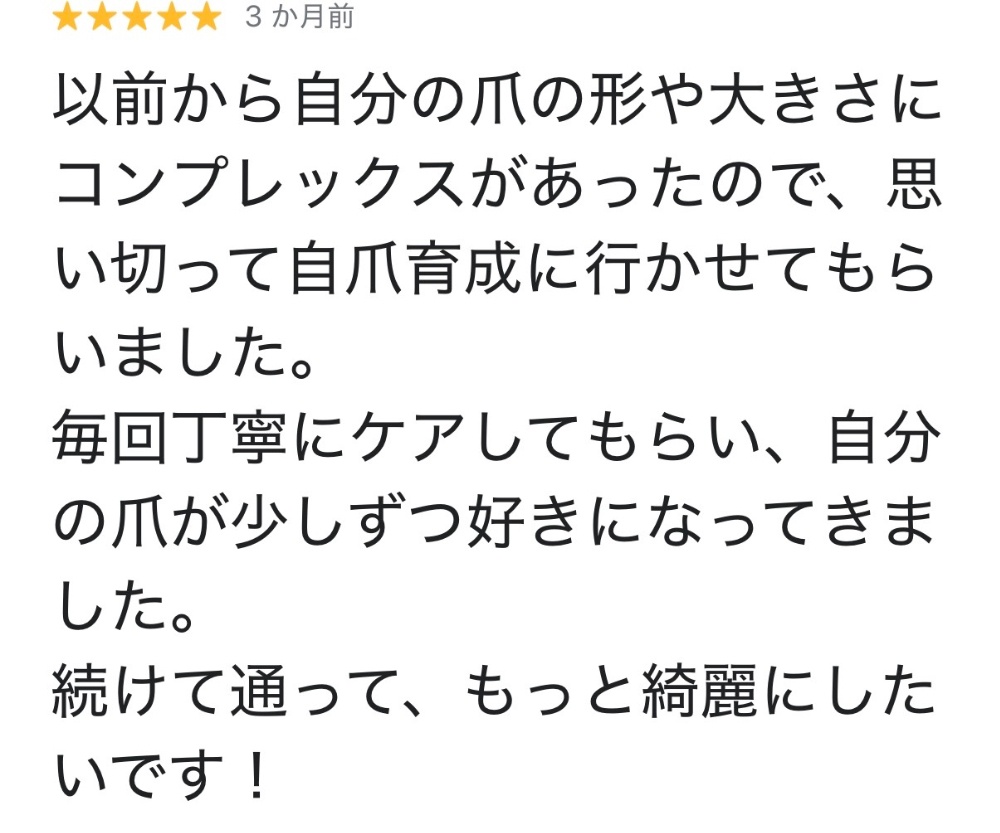 自爪の形と大きさにコンプレックスがあったお客様