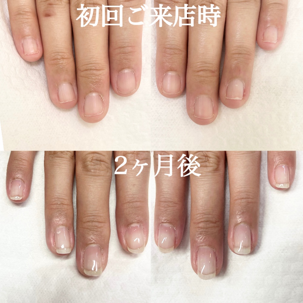 こんにちは!!滋賀県南草津の自爪育成サロンラブーケのサヤカです☆今回は2ヶ月で縦長のキレイなお爪に成長されたお客様をご紹介いたします^^爪を噛んだりむしったりし、深爪にお悩みをお持ちでご来店いただきました!